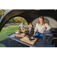 • Connect to a battery box or power station via the Anderson-style connector for hot snacks on the go.