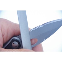 We at EZE-LAP feel that 98% of all sharpening can be performed by our fine (600) grit diamond. This fine grit diamond has the abrasive ability to effectively sharpen a dull knife in less than a minute and bring the edge to keen razor finish. The fine grit is offered on all EZE-LAP diamond products. Round sharpeners are available in the fine grit only. Flat sharpeners have the designation “F” to indicate the fine grit after the numbers, i.e. (26F or 72F).
