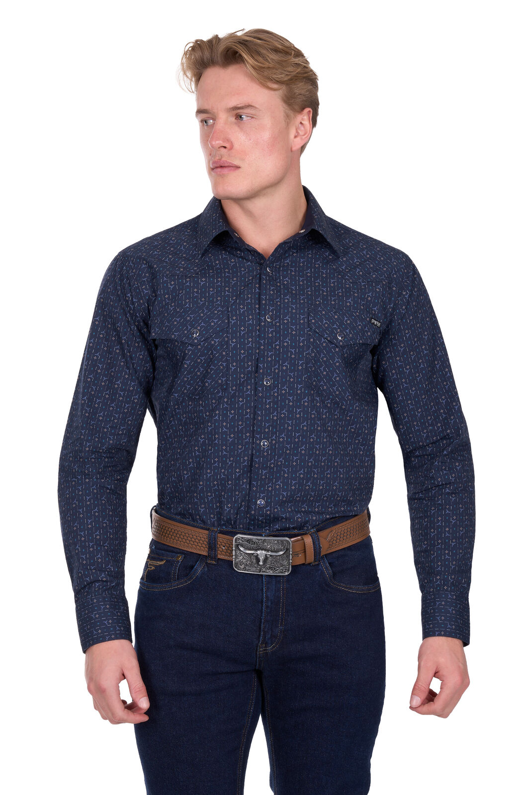 • Dual chest pockets with western flap design
