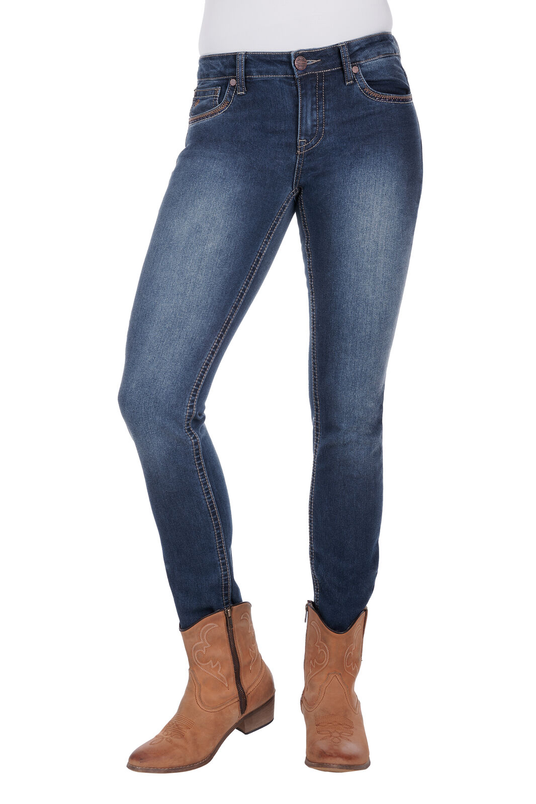 Sleek, stylish, and made to move with you — the Pure Western Women’s Vivienne Skinny Jean delivers the perfect mix of comfort and contemporary Western style. Crafted from premium stretch denim, these jeans offer a flattering fit that hugs your shape while allowing easy movement. Finished with signature Pure Western detailing, they’re your go-to for both casual days and dressed-up nights.