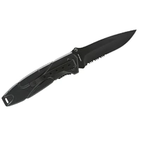 The prefect utility knife. Featuring an innovative drop point blade combined with a half serrated edge for tactical cutting.