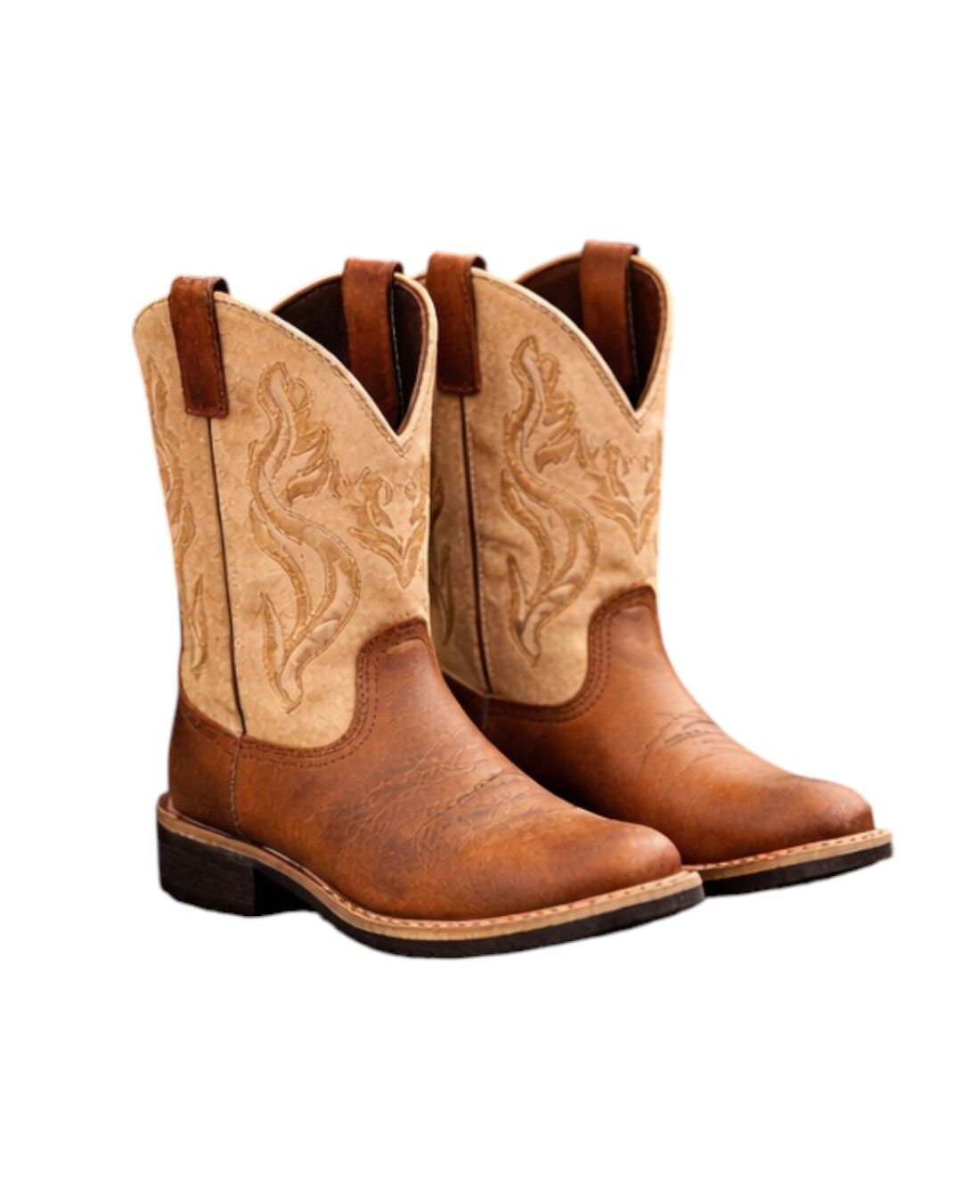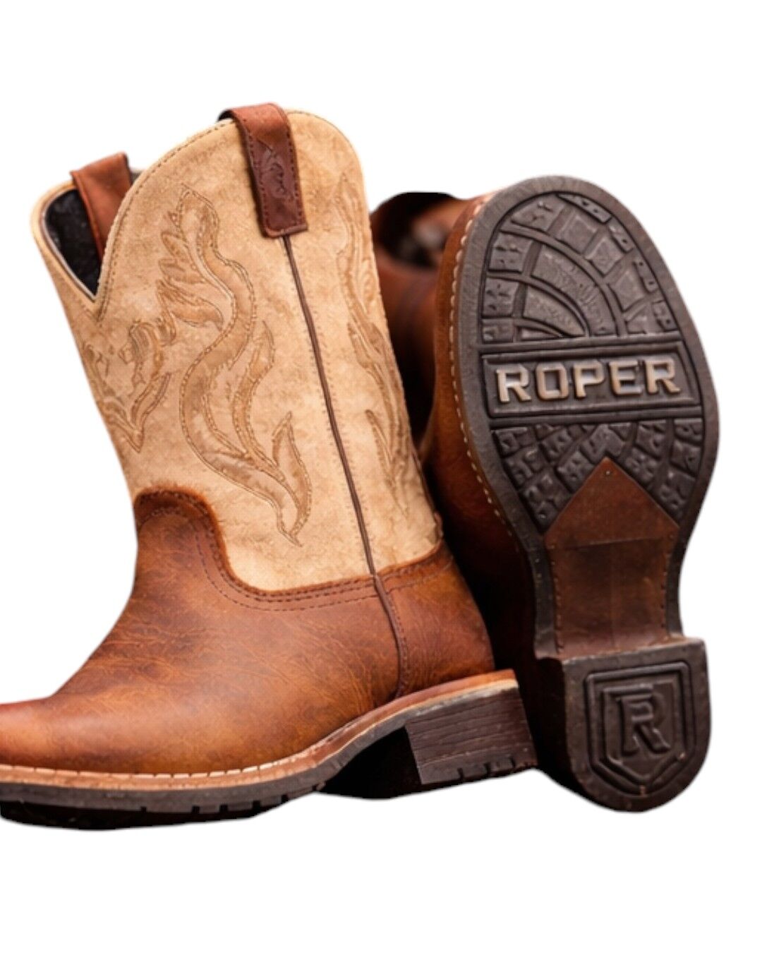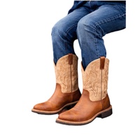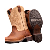 The Roper Kids Taylor Boots in Tan bring classic western style to little cowboys and cowgirls. Featuring a rich tan foot with a lighter stitched shaft, these boots are designed to look authentic while staying comfortable for active kids.