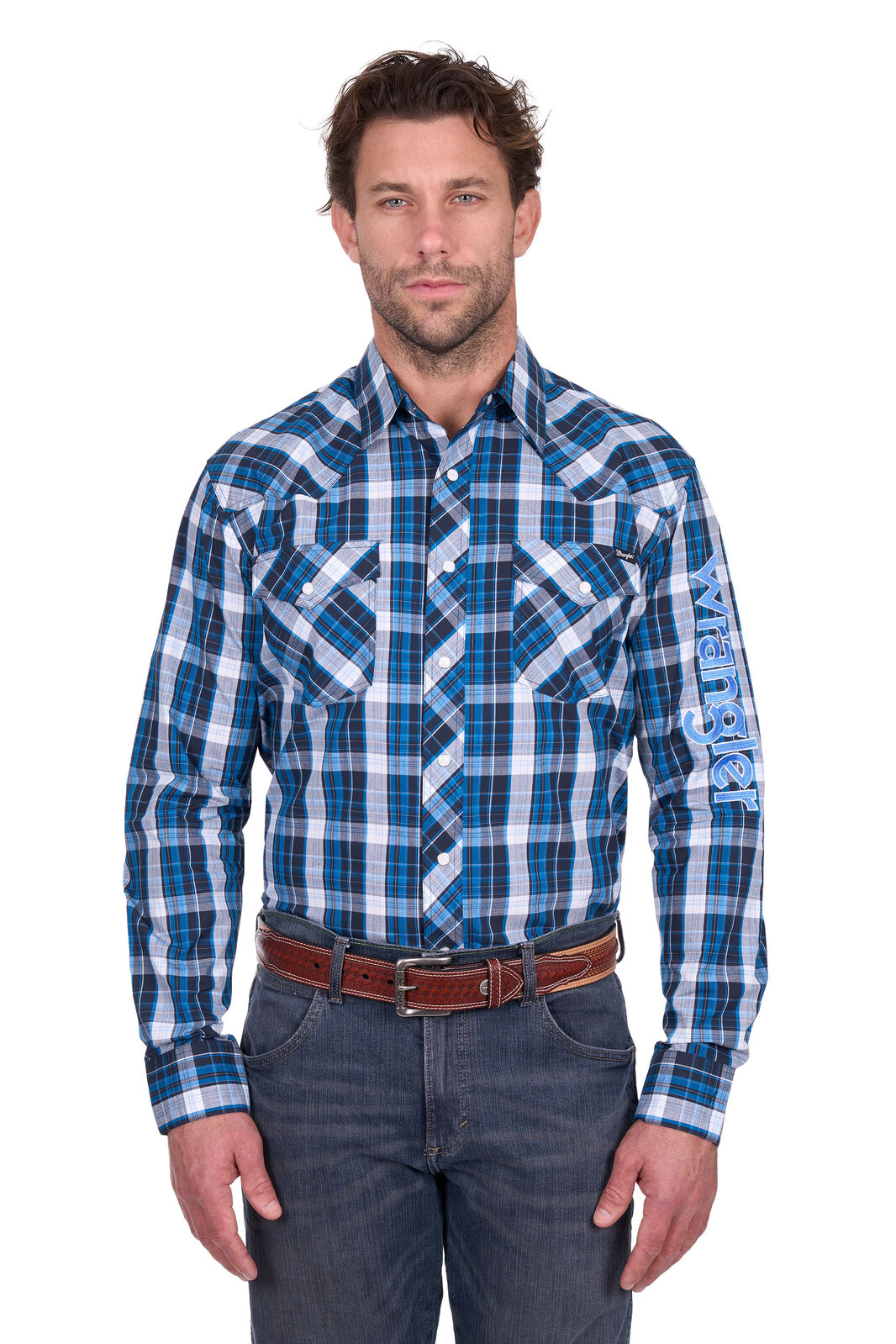 • Embroidered Wrangler logo for signature branding